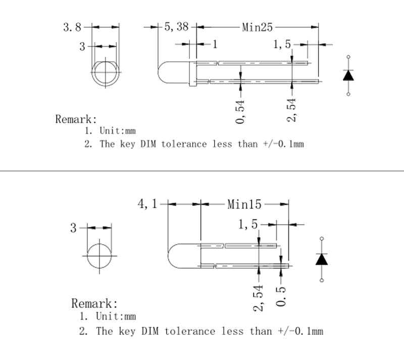 - 外觀尺寸:3.0(3.8)*5.38mm