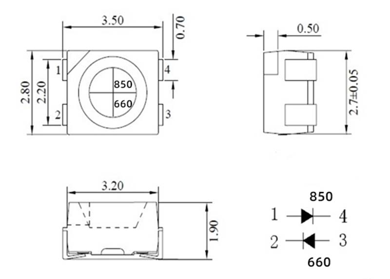 - 波長:可做可見光波段、紅外如660、730、780、810、850、880、940、990、1050nm等,三芯可組合定制