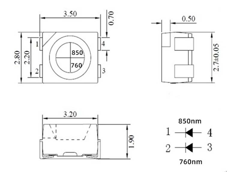 3528IR850+760nm美容燈珠