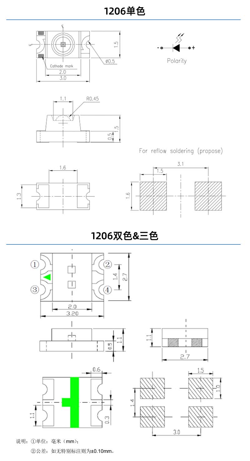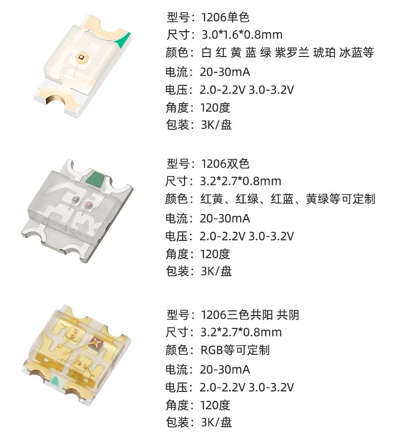 020 0603 0805 1206 2016 2835 3528 3030 5050