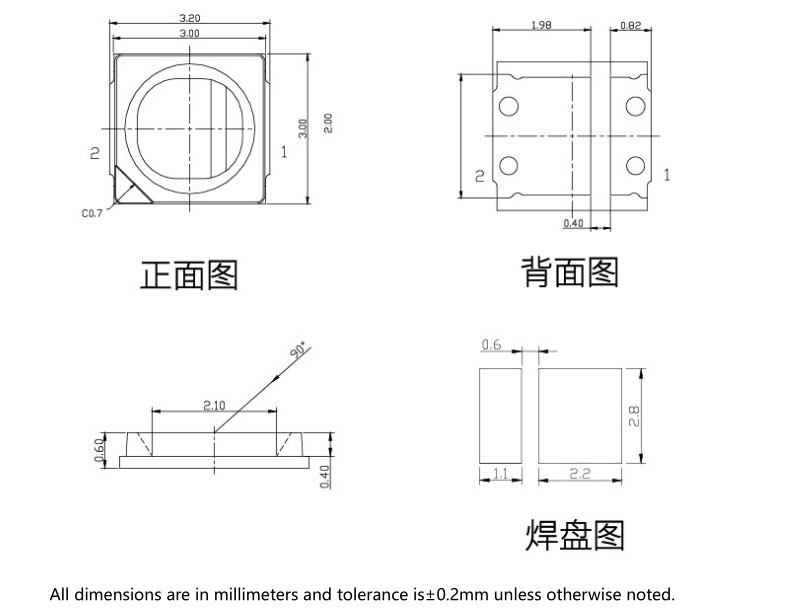 020 0603 0805 1206 2016 2835 3528 3030 5050